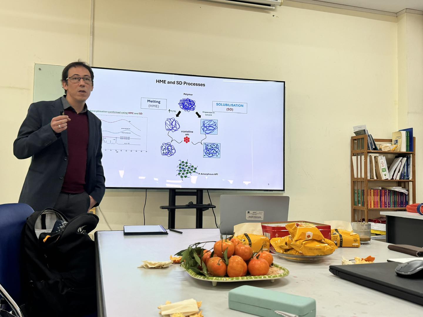 Tham dự buổi trao đổi học thuật có sự có mặt của TS. Công Tiến Dũng, trưởng Khoa Khoa học cơ bản; TS. Hà Mạnh Hùng, Trưởng bộ môn Hóa học; TS. Nguyễn Thị Linh, Phó trưởng Bộ môn Lọc -Hóa dầu cùng thầy cô giảng viên bộ môn Hóa, bộ môn Lọc -Hóa dầu và sinh viên năm 4 ngành Hóa dược.