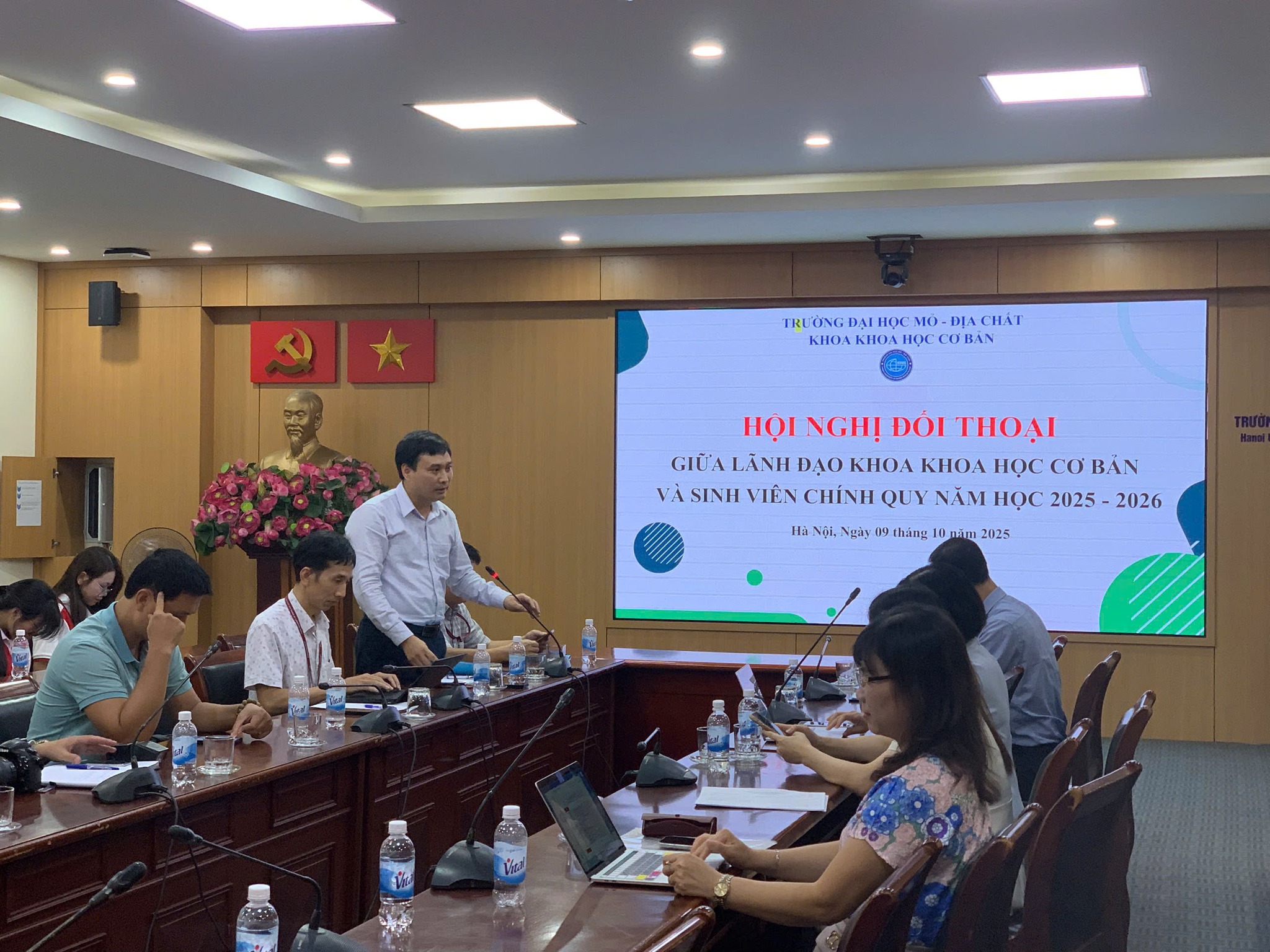 Hội nghị đối thoại giữa lãnh đạo Khoa và sinh viên chính quy năm học 2025-2026 diễn ra trong không khí cởi mở, thẳng thắn, thể hiện tinh thần lắng nghe của lãnh đạo khoa đối với sinh viên. Buổi đối thoại là cơ hội quý báu để sinh viên bày tỏ nguyện vọng, ý kiến và được lãnh đạo khoa giải đáp, góp phần tăng cường sự gắn kết giữa nhà trường và người học. Các vấn đề được nêu ra đều thiết thực, phản ánh đúng thực trạng học tập và sinh hoạt của sinh viên, từ đó giúp khoa có thêm căn cứ để cải thiện chất lượng đào tạo.
